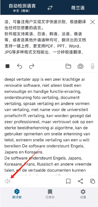 查看翻译结果的方式如下:翻译结果会呈现在屏幕上。若想听取翻译后的文本内容,你可以点击“播放”按钮。