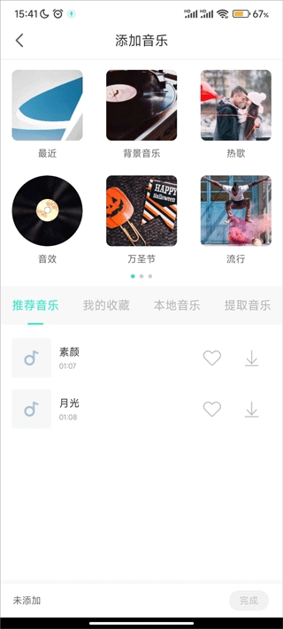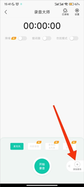 添加操作完成后,就可以启动录音功能并播放音乐了,需要注意的是,音乐只能在录音状态下进行播放。