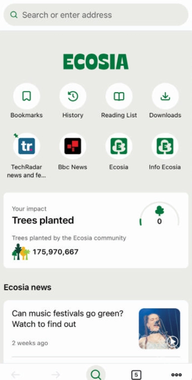 Ecosia不会永久保存搜索记录,不会把数据卖给广告商,也不会使用外部的跟踪工具。