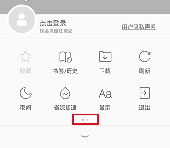 唤出功能界面,在其中找到【书签/历史】按钮,点击