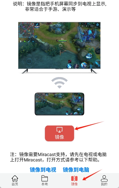 先打开镜像页,接着点击“镜像”按钮,随后打开系统的“无线显示”窗口,在窗口中找到对应的镜像设备并点击进行连接。