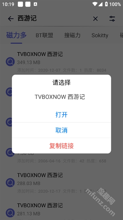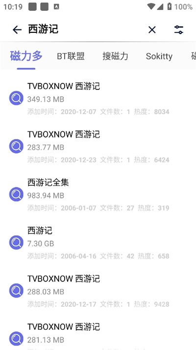 搜索结果会即刻呈现,你可以切换查看不同的磁力搜索结果。