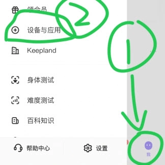 安装keep,打开。点击“我”,设备与应用