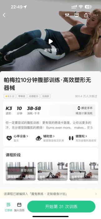 课程新增练中评估指导环节,能更全面地了解并记录肌肉能力的变化情况,后续课程也在持续扩充完善中。