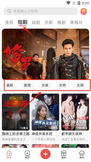 在下方推荐栏还可以像刷抖音似的刷短剧