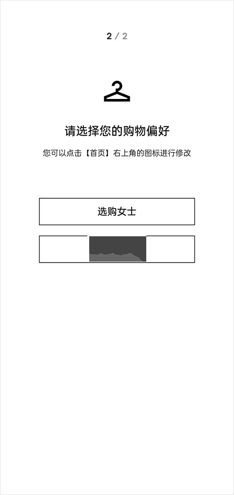 打开Farfetch平台后,需先设置购物偏好,其中包含男士和女士这两个选项可供挑选。