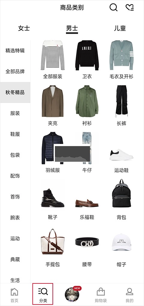 用户可以直接根据产品分类进行选择,能够直接挑选女装、男装或者童装。