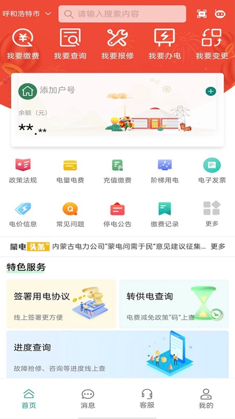 支付购电:只需输入户号,即可实现购电服务。