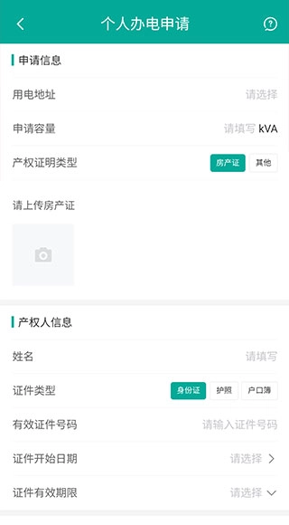 进入对应的办电申请页面,填写所有必要的信息。