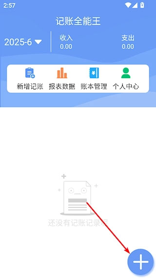 启动软件后,点击界面右下角的加号图标,开始创建新的账单记录。