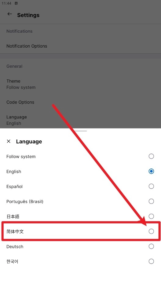 在弹出的菜单栏中选择“简体中文”即可完成。