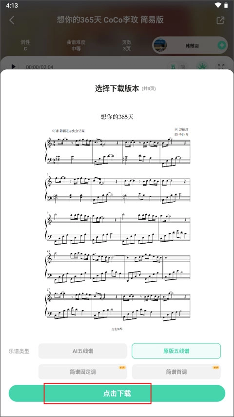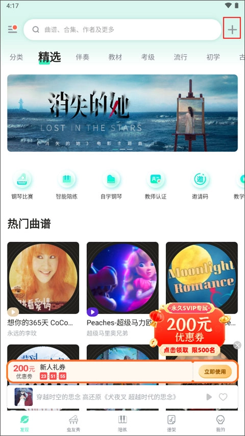 打开并进入【发现】界面,在上方挑选你心仪的曲谱,接着进入其详情页面。