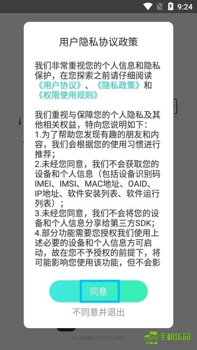 阅读弹出的用户隐私政策协议,点击【同意】;