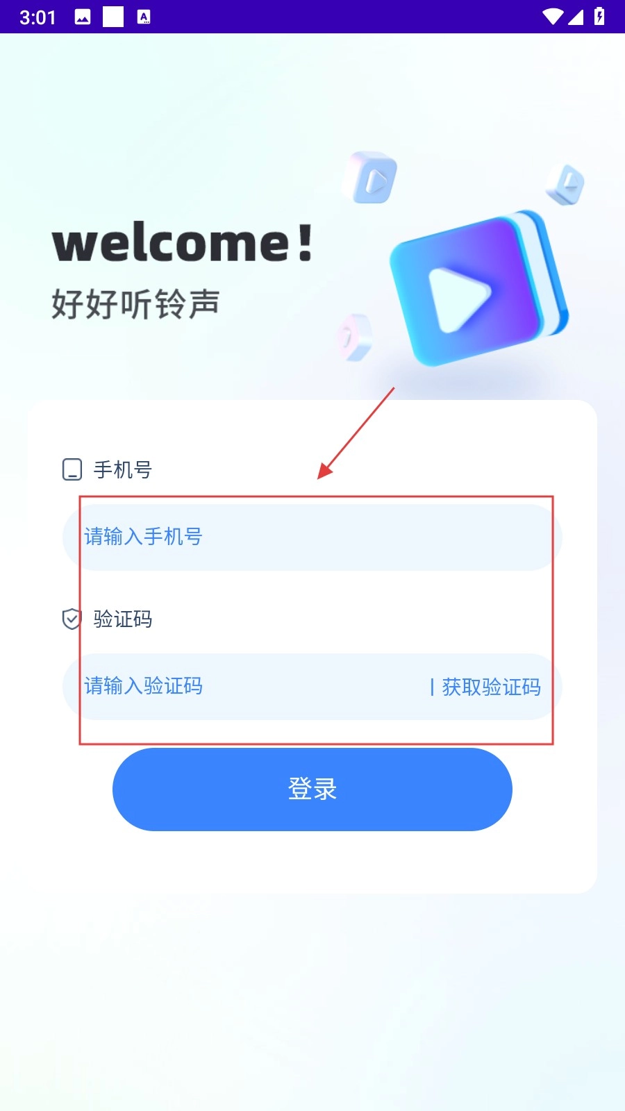在登录信息填写页面,输入【手机号并输入验证码】。