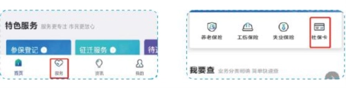 点击首页下方的【服务】图标,进入【服务】页面后选择【社保卡】选项,即可进入社保卡页面。