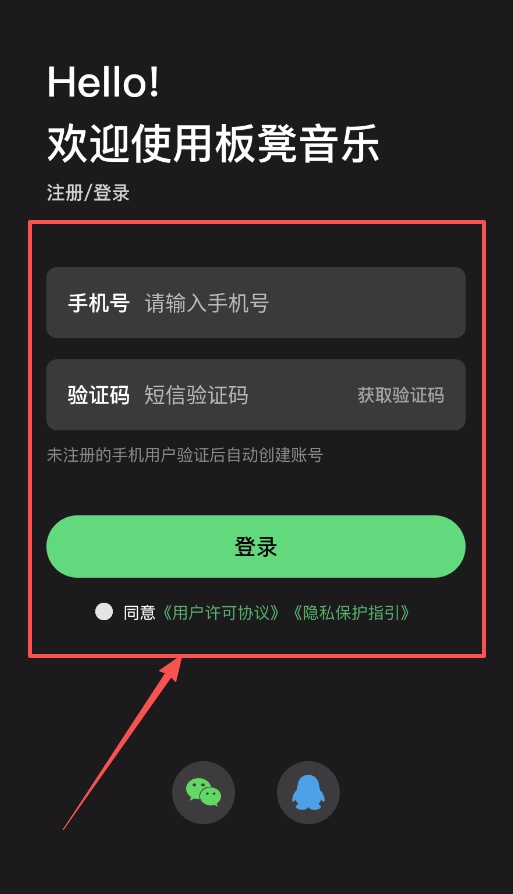 使用该软件前,需先完成注册登录流程:在登录页面输入手机号码以获取短信验证码,勾选同意相关协议后点击登录按钮,系统将自动为您创建账号。