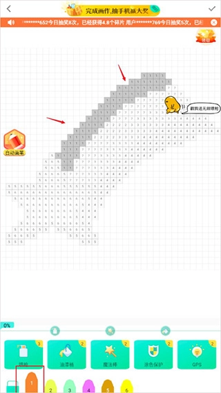 提供了填充色彩的数字符号,选择对应的数字即可涂色;