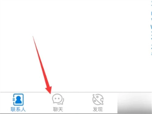 在底部菜单栏找到“聊天”选项并点击,然后点击右上角的放大镜图标。