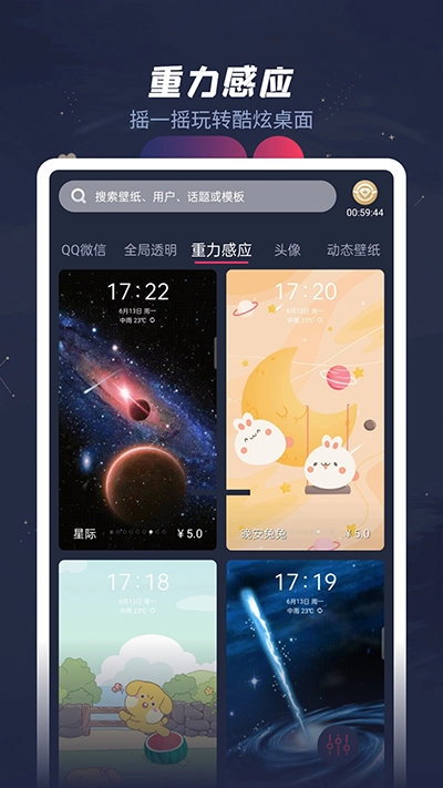 各类创意美化模板,静态壁纸模板or动态壁纸模板任你挑选,添加关于你的个性元素,一键定制私人专属壁纸,还有各种酷炫特效,给你一个梦幻桌面;