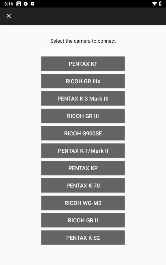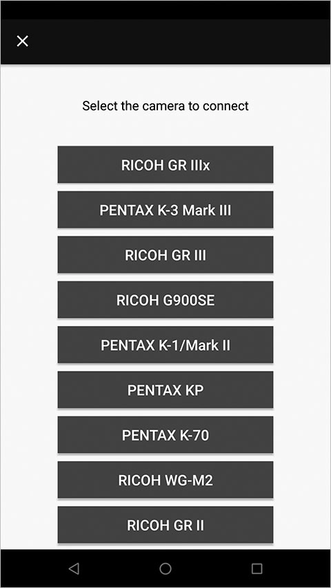 点击相机的图像模式或拍摄模式,即可在移动设备上弹出“型号选择屏幕”。