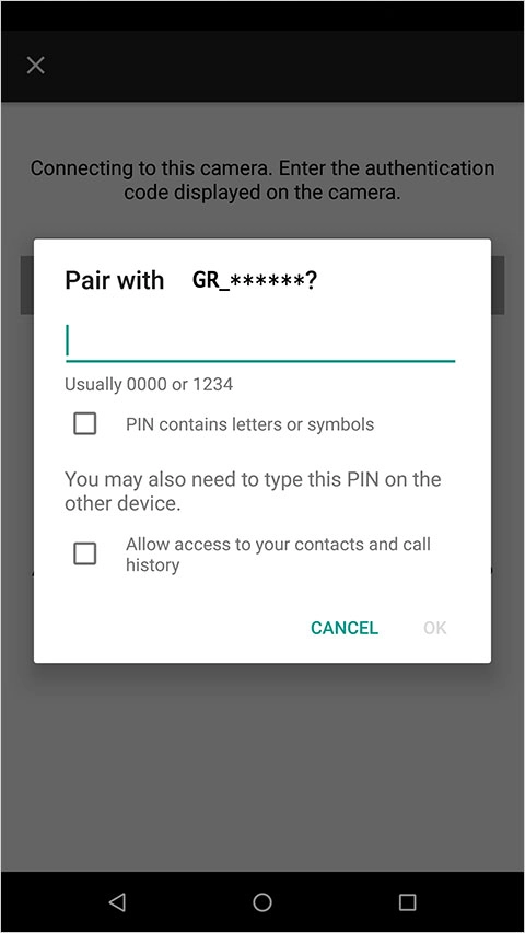 ③ 在应用程序的配对屏幕上输入显示的设备名称。