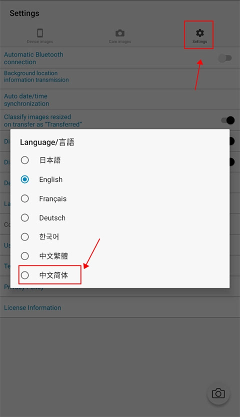 进入软件后,点击页面右上角的“settings”选项,接着在下方找到“Language/言语”并点击,最后选择简体中文就完成了。