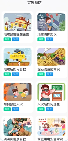 在我灾害预防界面,可以获取到丰富的灾害知识。