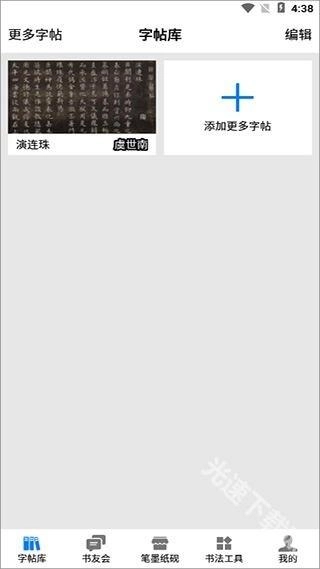 在首页的“字帖库”界面中,点击“添加更多”按钮即可更新获取最新的字帖资源。