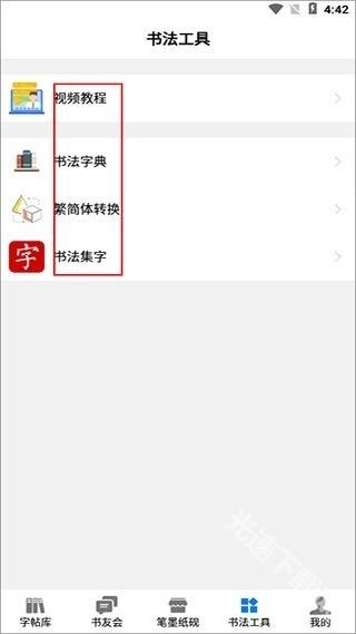 在书法工具里,既能观看教学视频,也能借助字典查询相关的书法信息。