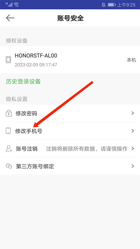 进入账号安全界面,选择“修改手机号”选项,