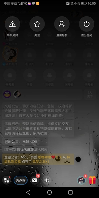 送礼功能也颇具趣味,进入房间后,点击任意在线用户的头像,便能查看其资料页,进而开展送礼物、点赞、猜拳、施魔法乃至举报等一系列操作。