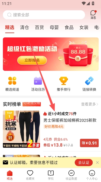 软件首页精选了可赚取佣金的下单商品,大家可以根据自己对佣金比例的估算来下单购买。