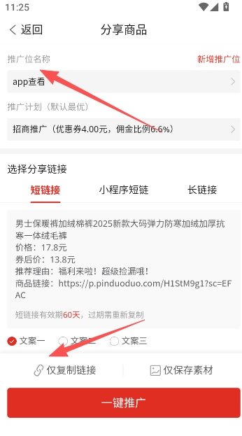 通过选择推广名称、推广计划,搭配分享链接与文案来推进推广发布;发布结束后,把发布的内容截图发给商家,随后等待佣金到账。