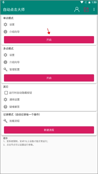 修复了流程加载失败的问题以及部分闪退情况,操作简单易上手,一键即可运行;不需要ROOT权限,还能在全局应用程序中使用。