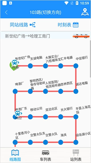 公交列表一览:在这里能够详细查看车辆列表与站点列表的具体信息