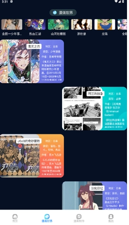 在漫画世界页面内有着多样的知名漫画介绍版块;