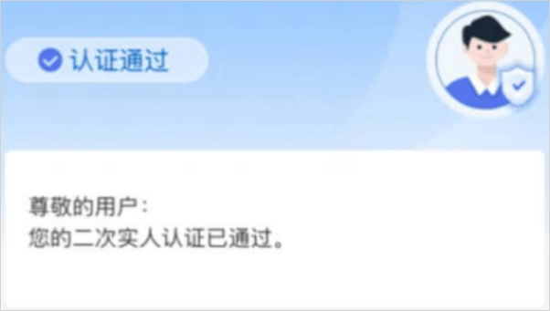 身份证上传成功且人脸识别完成后,返回查看时系统会自动审核认证结果。
