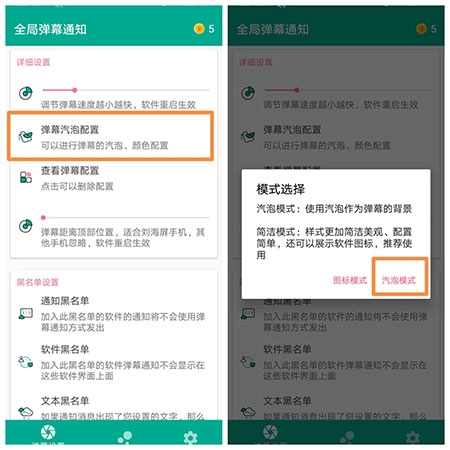 还可设置:弹幕气泡配置,选择“气泡模式”。