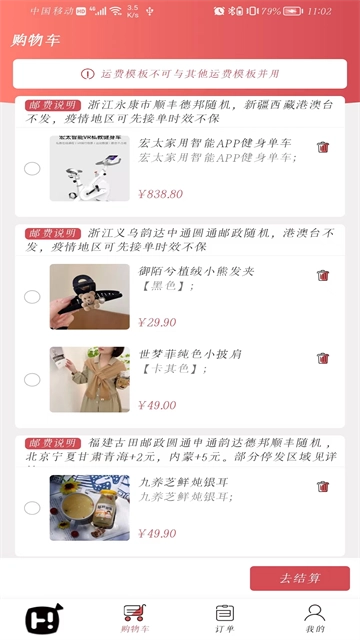 挑选好商品后,点击结算按钮进入确认页面,接着按照提示填写收货地址、选择支付方式等信息。