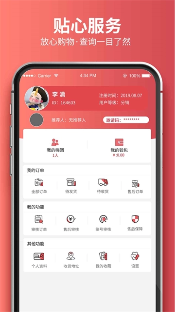 【代理中心】这里也为有创业想法的用户提供了代理授权服务,大家能用最低的进货价格采购商品进行销售,从而获取收益。