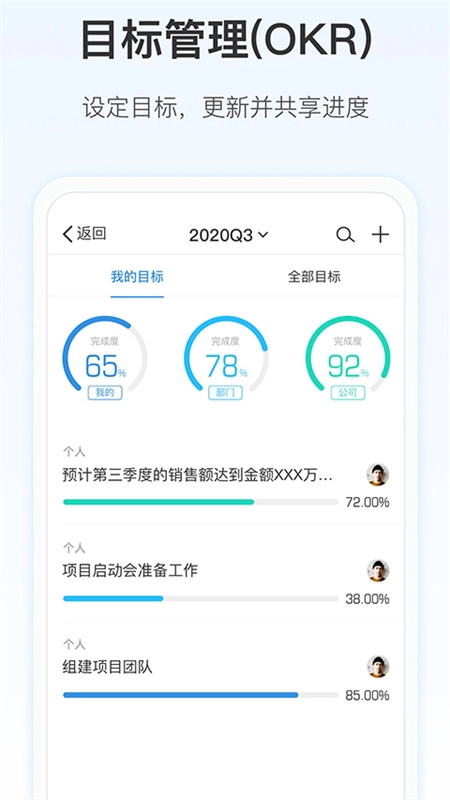 企业通讯录:依托清晰的组织架构与实名信息体系,找人时仅需轻点对应联系人,就能快速发起即时聊天或进行任务分配。