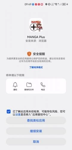 请勾选“已了解此应用未经检测……”这一选项,随后点击“继续安装”按钮。