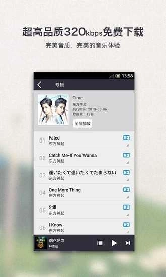 超高品质(320kbps)的歌曲,能为耳朵带来更优质的听觉享受。