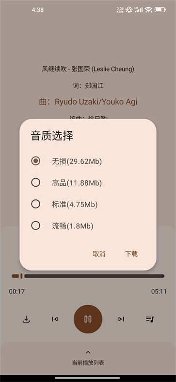 点击后会弹出音质选择的提示窗口,挑选其中一种音质后继续点击即可。