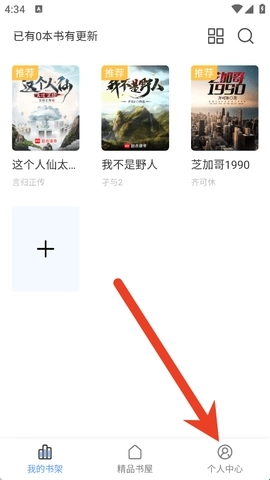 打开好的奇墨小说后点击右下角的“个人中心”。