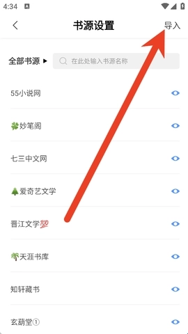 有新书源的小伙伴可以点击右上角的“导入”按钮。