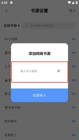 只需把您持有的网络书源链接直接复制到这个对话框里保存就行。