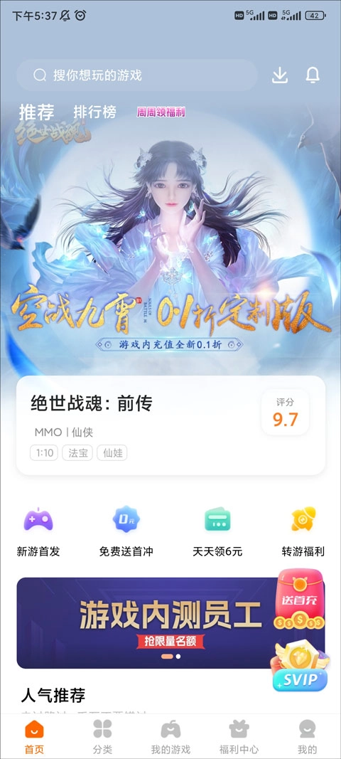 全网涵盖小七、梨子、咪噜、一元、4399、早游戏等平台的bt游戏、折扣游戏,以及公益游戏、单机游戏等,共收录5000余款热门游戏。