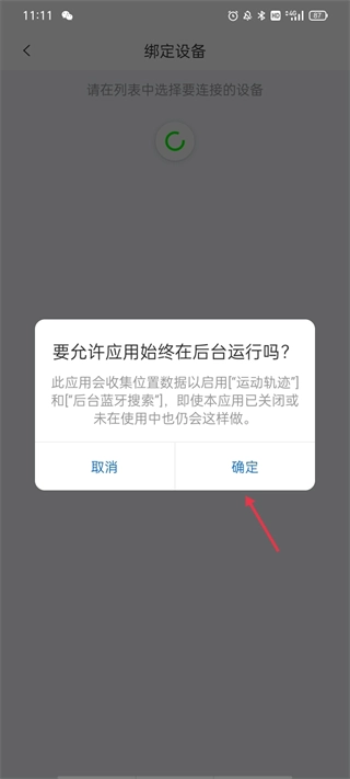 页面此时弹出提示,显示软件需要获取权限,确认后只需等待设备被搜索到并完成连接即可。