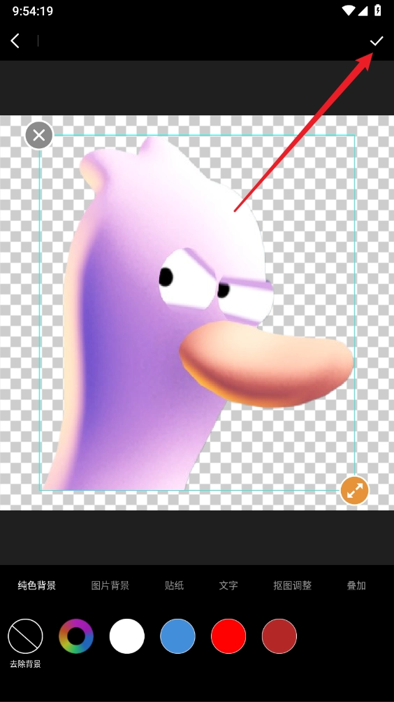 完成操作后就能查看抠图结果,支持点击精修功能去除边缘多余图案,还可以对图片背景、文字、抠图参数等进行选择与调整,全部设置好后点击右上角的对钩按钮就可以了。